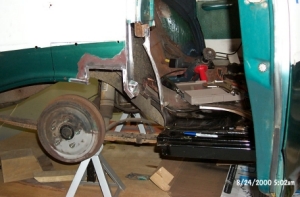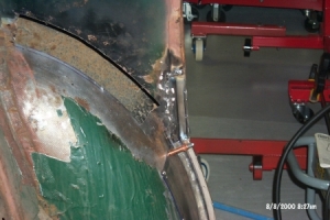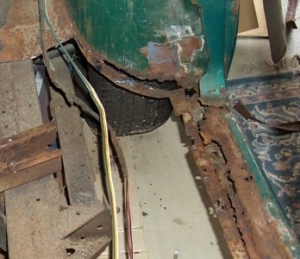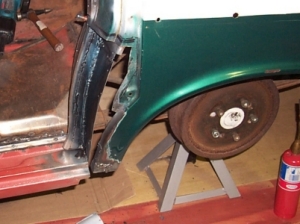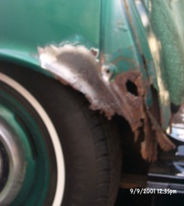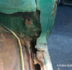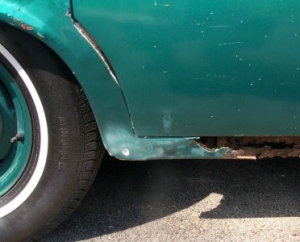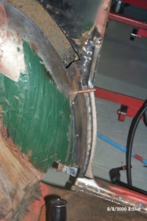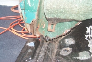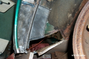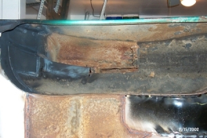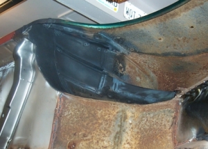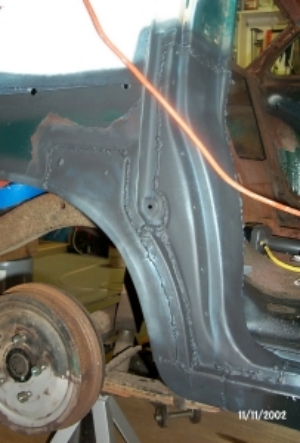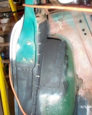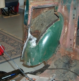 | Both wheelwells were rusted through in the same spots, where the tires threw the water, sand, and salt. Both were repaired and sealed with POR15 and body sealer. | |