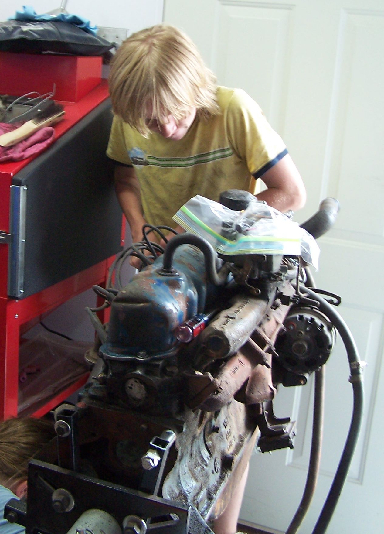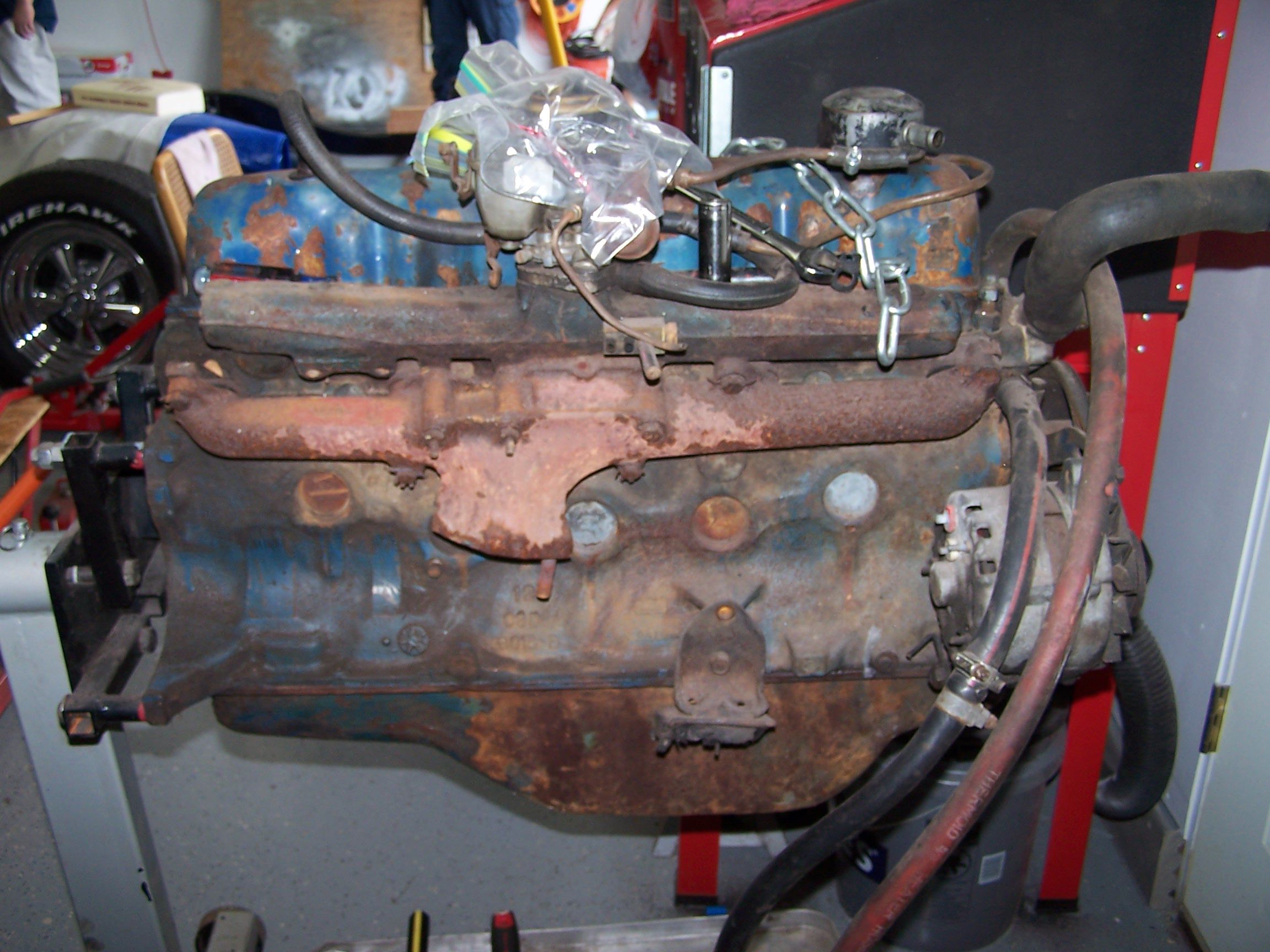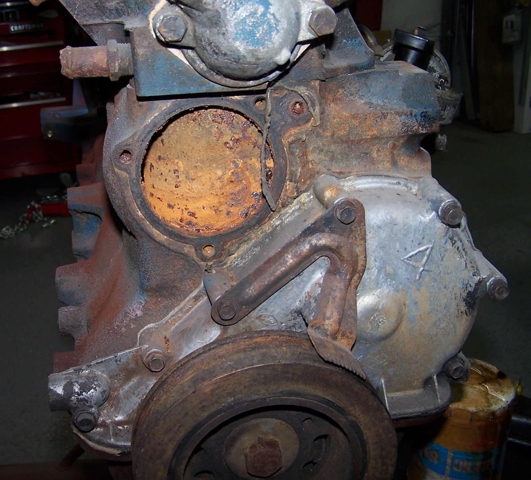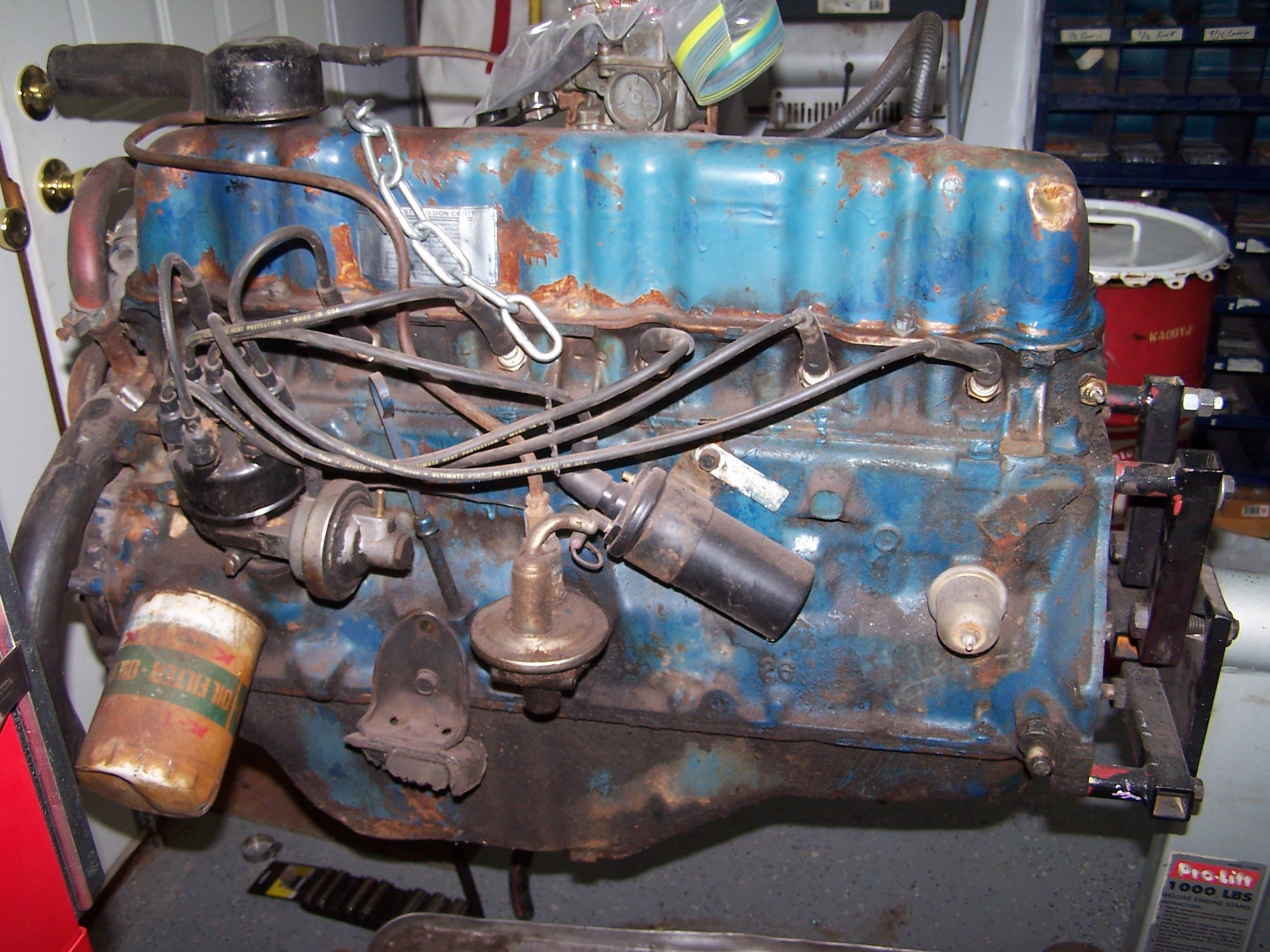 While we helped a friend rebuild the engine in his '78 Olds, we started tearing down the replacement 200ci straight 6 for the Ranchero. The original engine is still in the car. While we thought it was a 144ci, turns out that it was another 200ci. A 144ci has 3 freeze plugs. A 200ci has 5 freeze plugs.