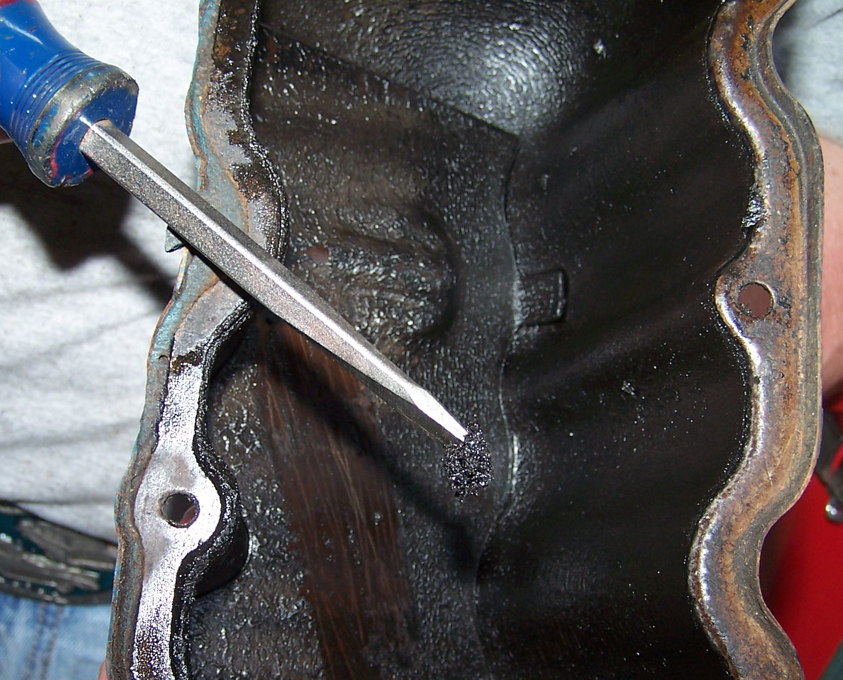 This engine has seen some use and probably some abuse through the years. The sludge isn't caked on too bad though.