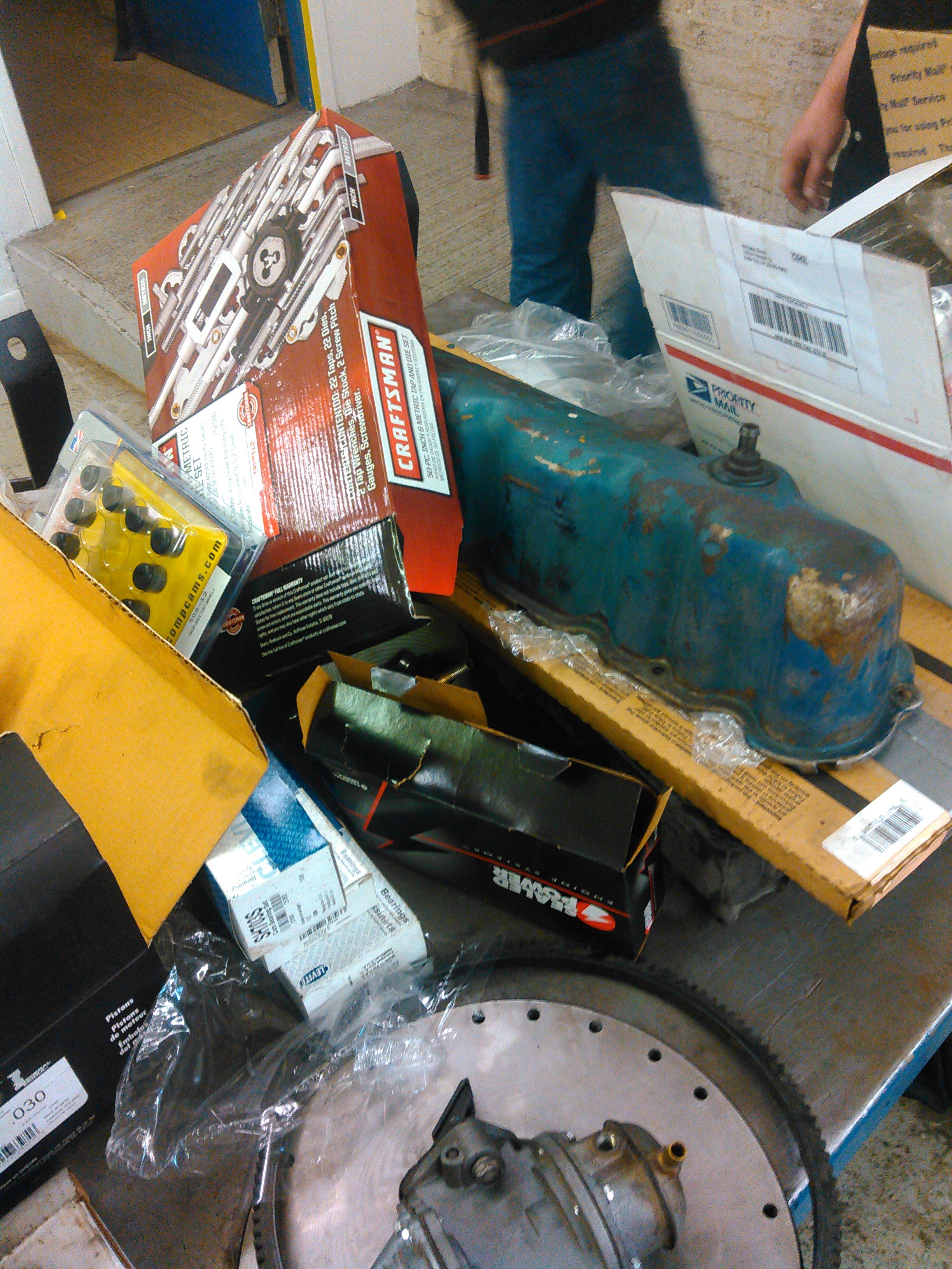 The much larger pile of parts that accumulated once the rebuild started.