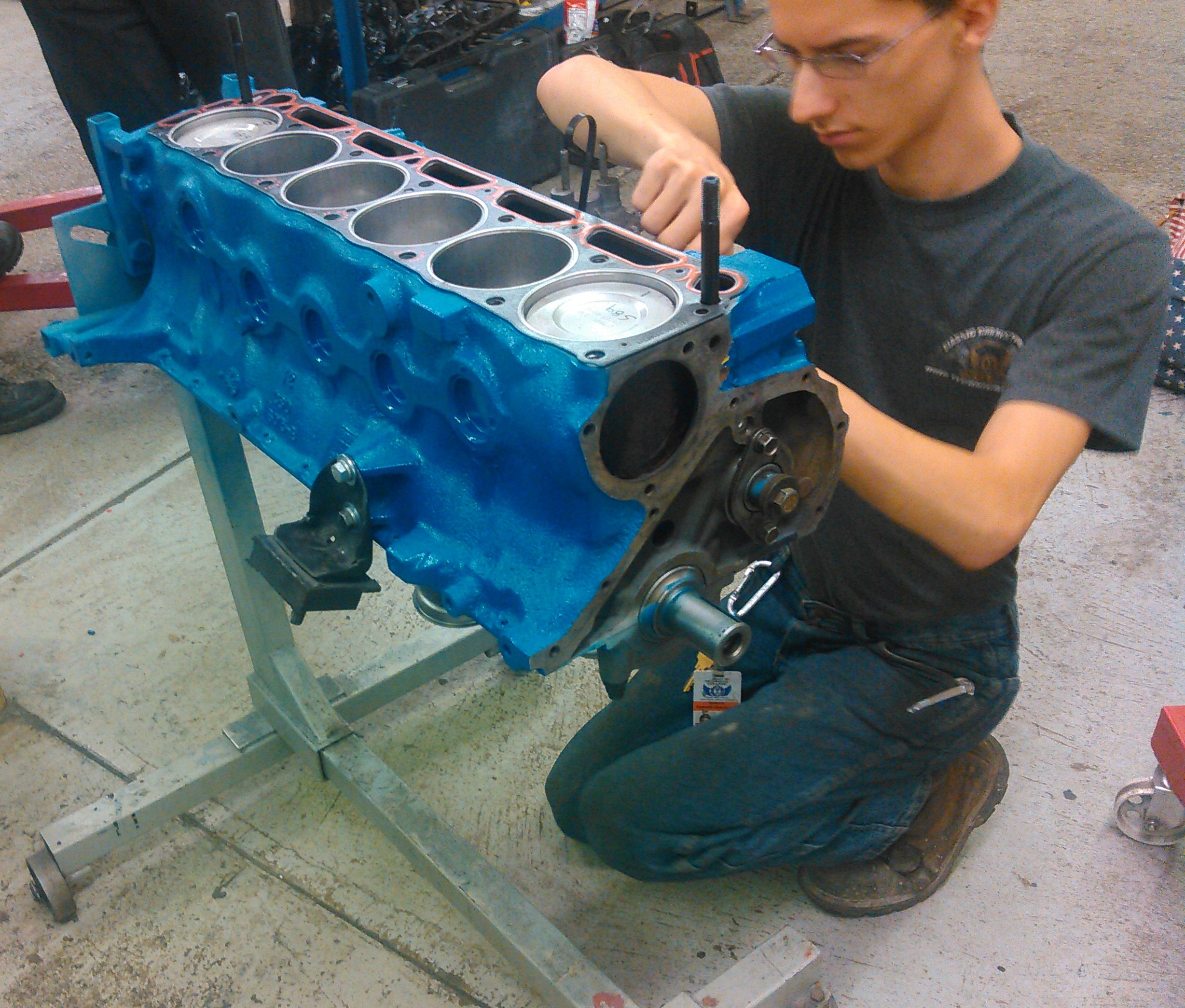 The class worked in teams. As this was a special permission build, he was allowed to hand pick his team. One of his teammates is working on the engine here.