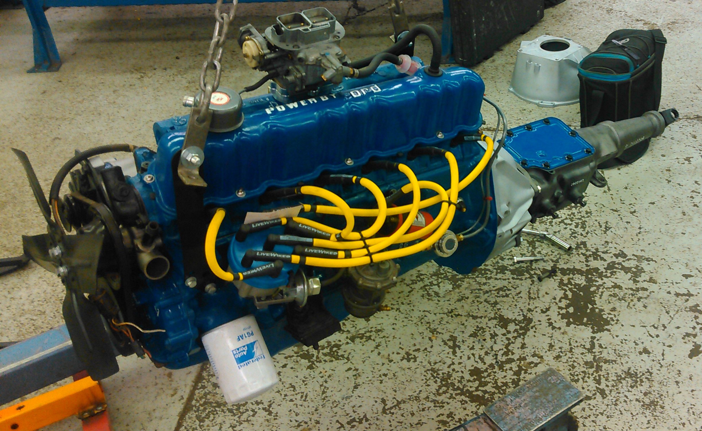 Time to install the trans. However, something went wrong and the trans would