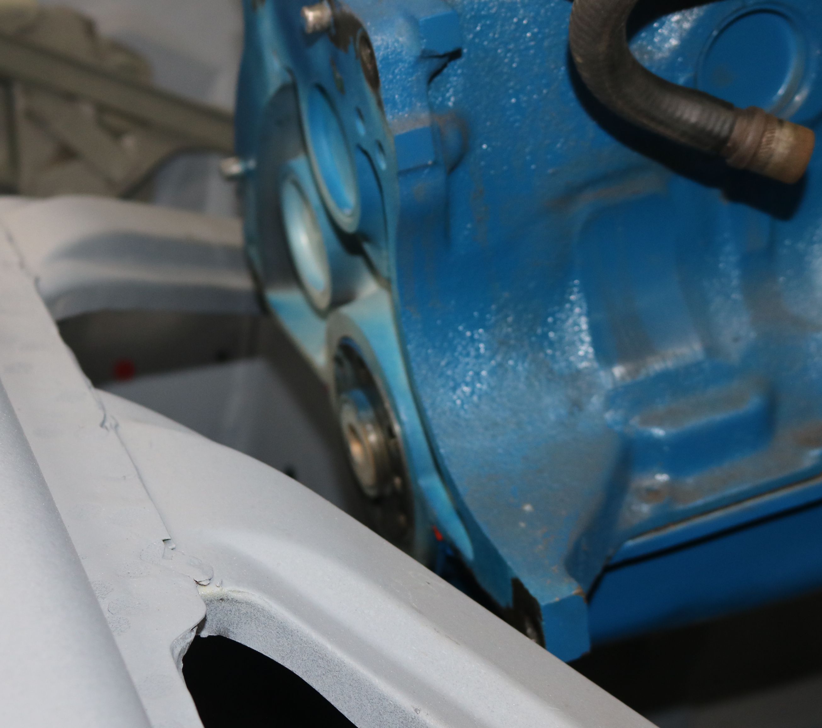 And problem number two - the air conditioning pump is resting on the front frame
