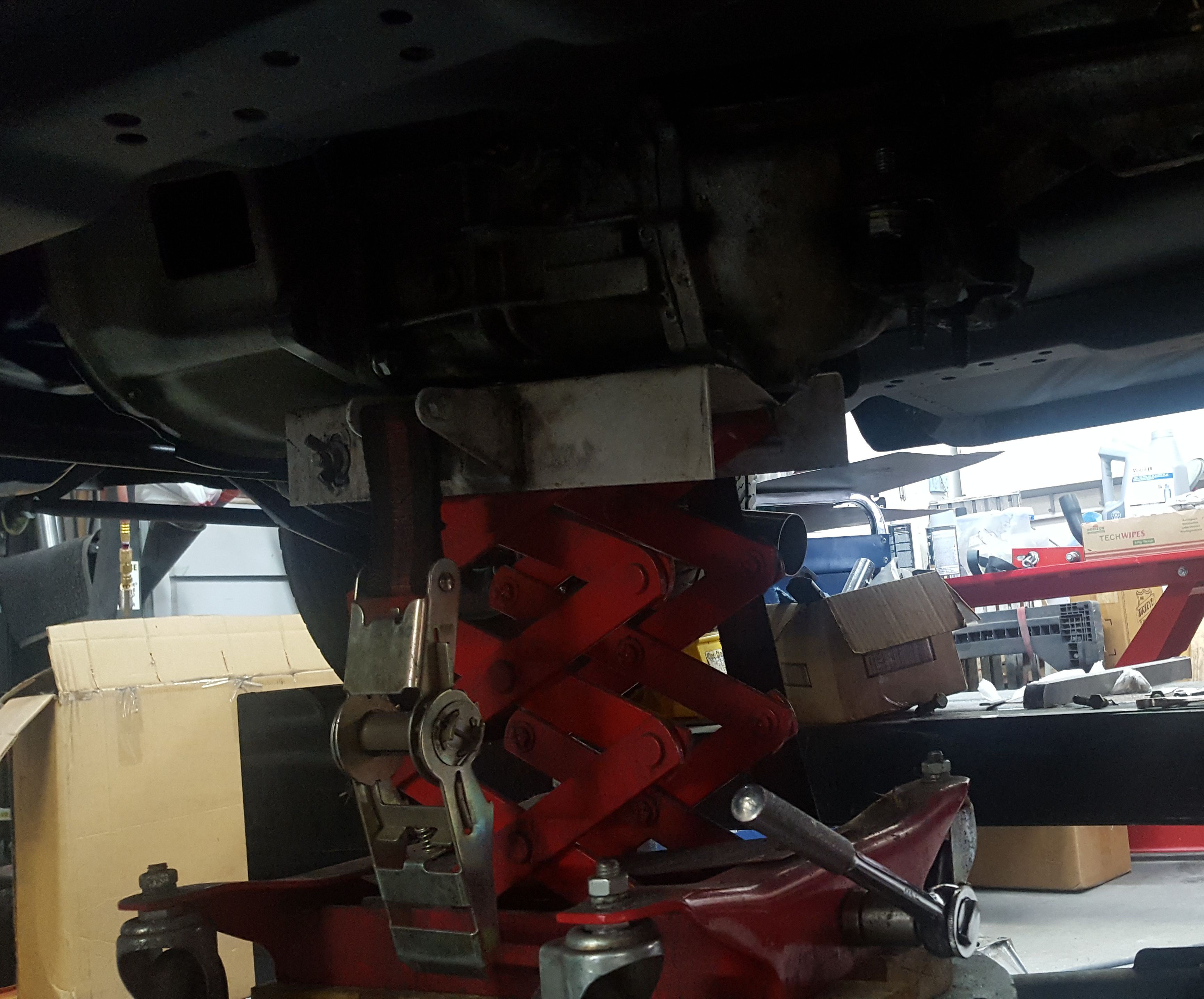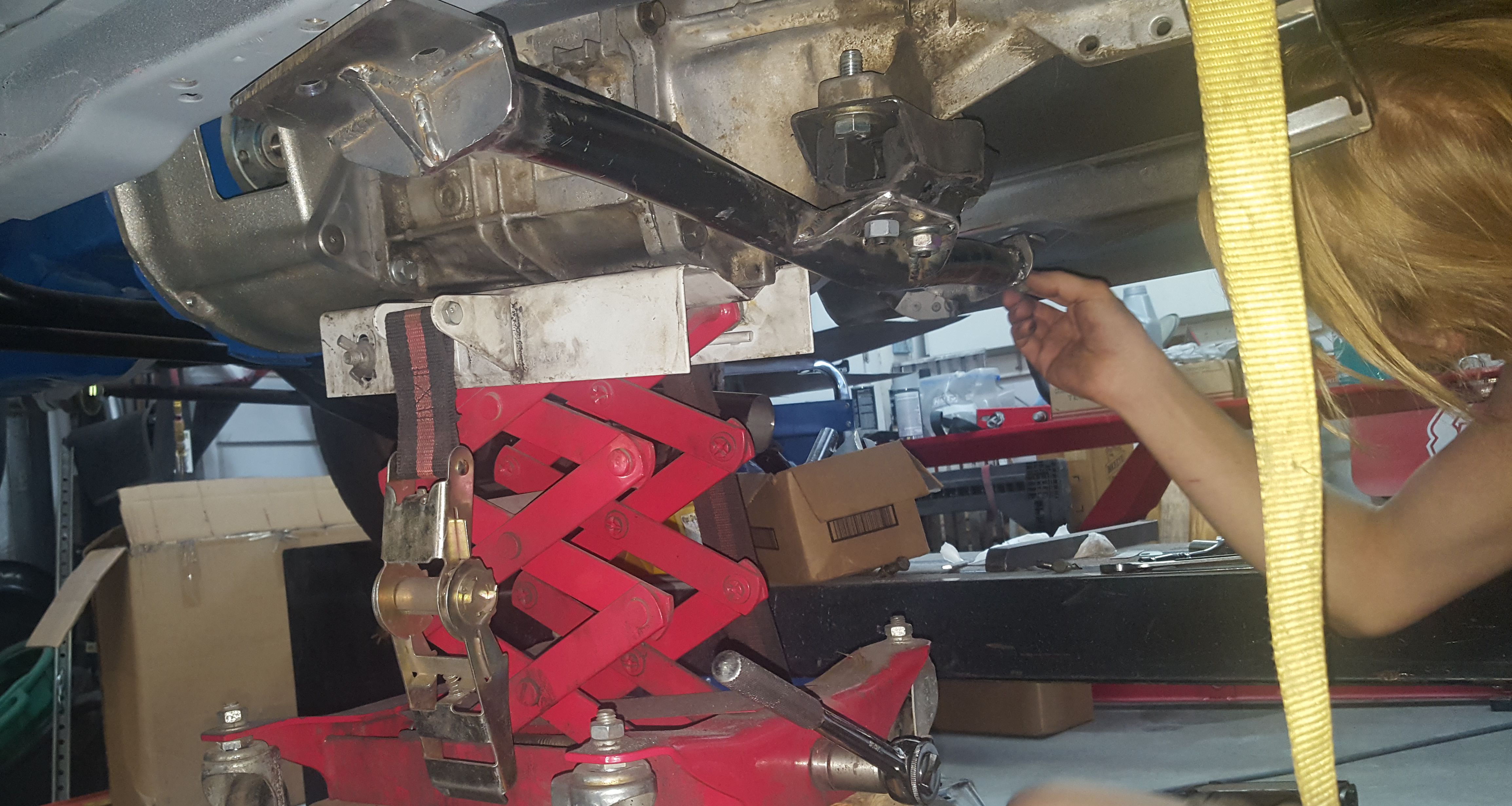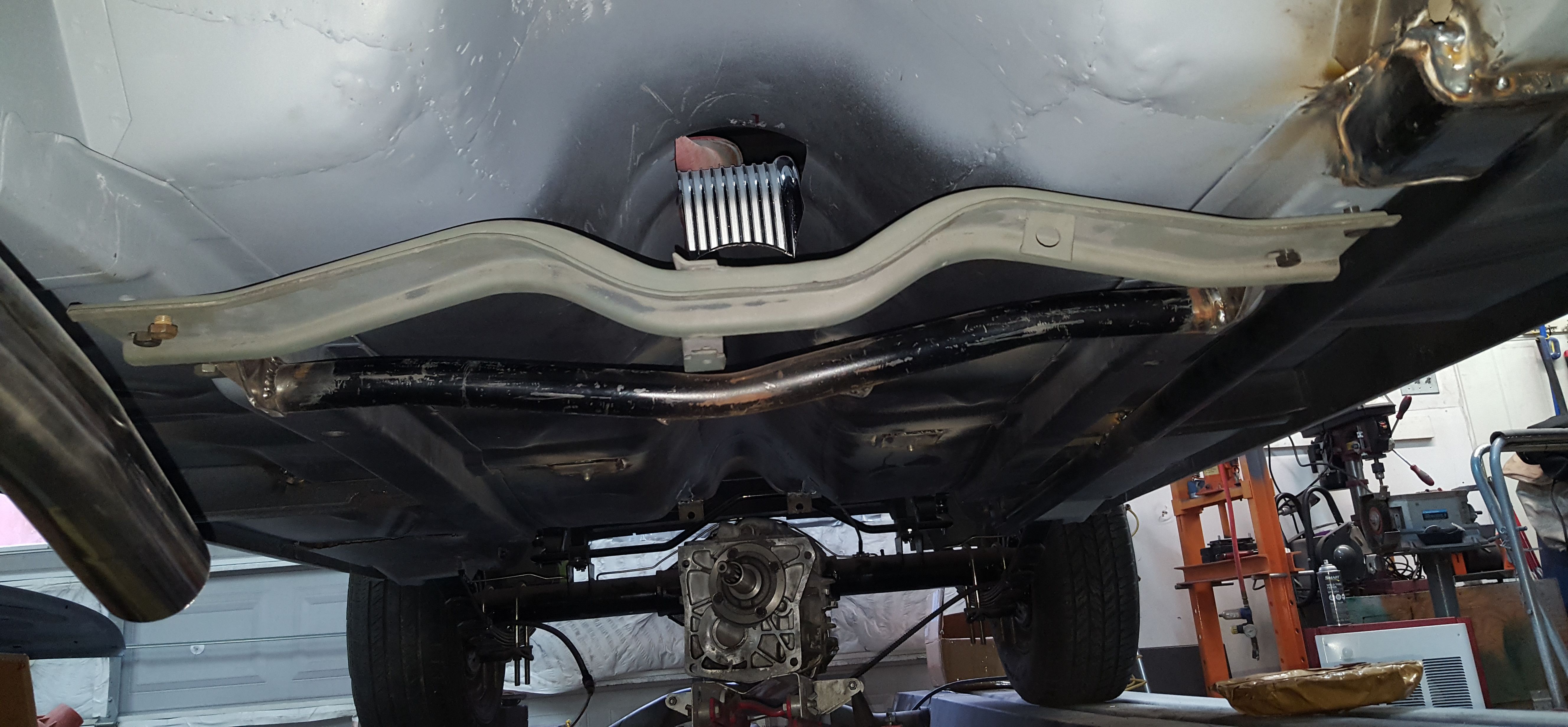A better view of the new transmission mount. The original will be removed once