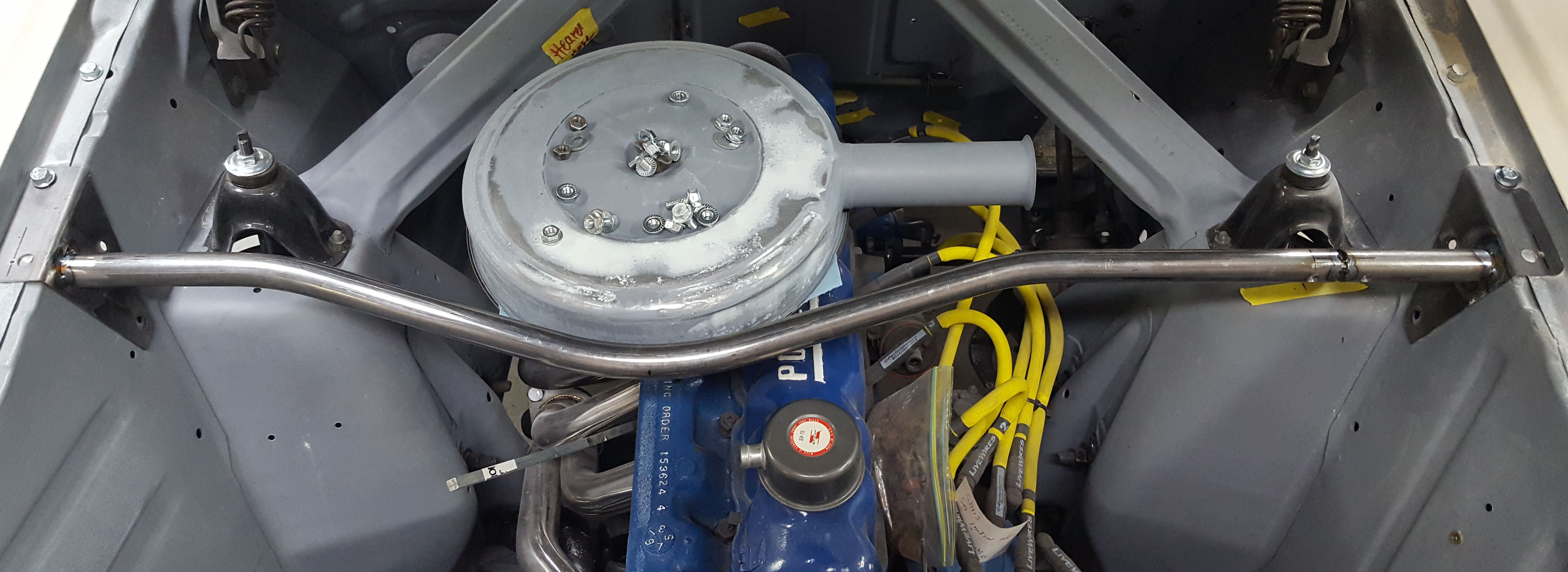 One cleaned up engine bay, ready to receive. This is with the replacement fenders