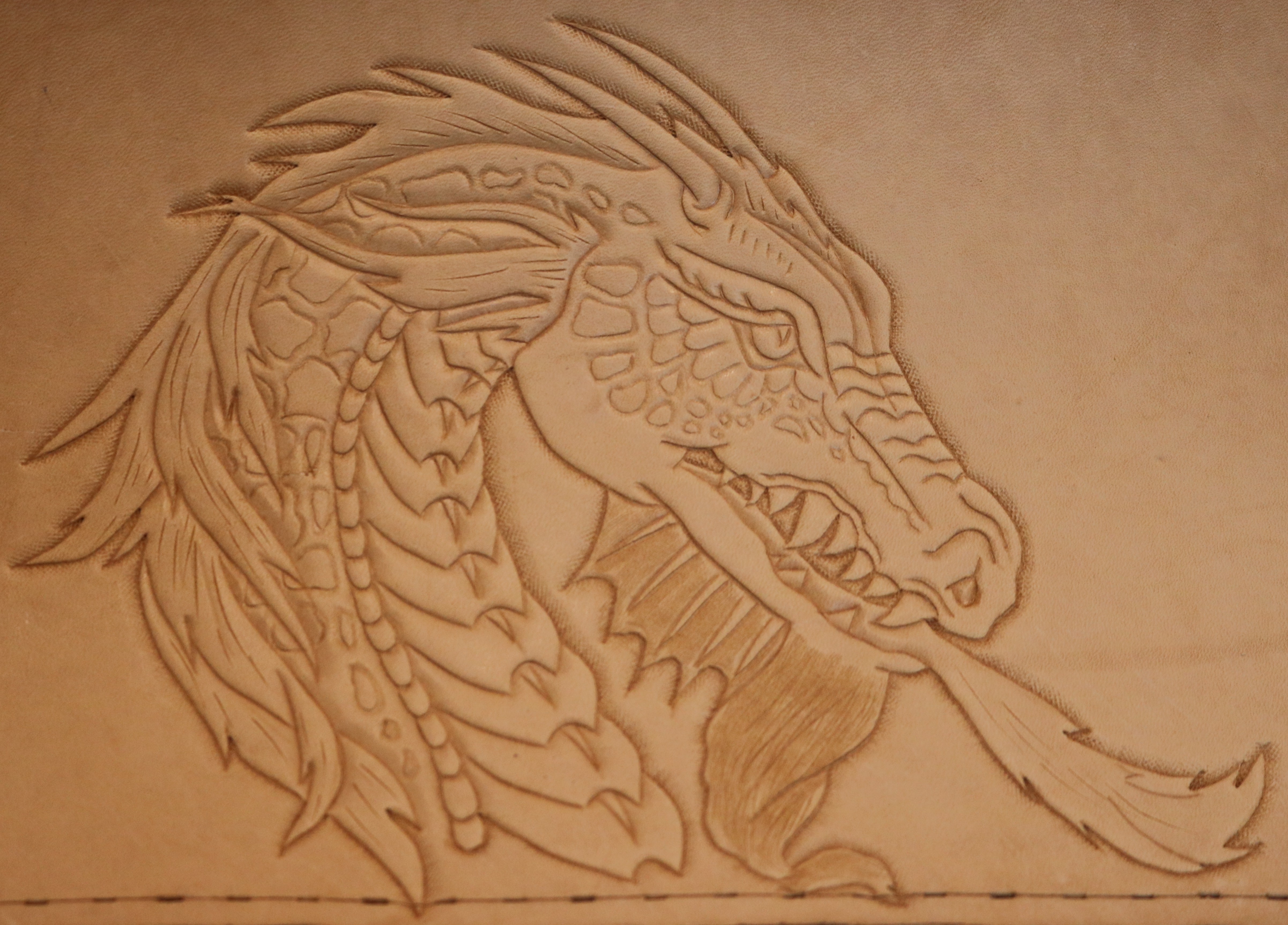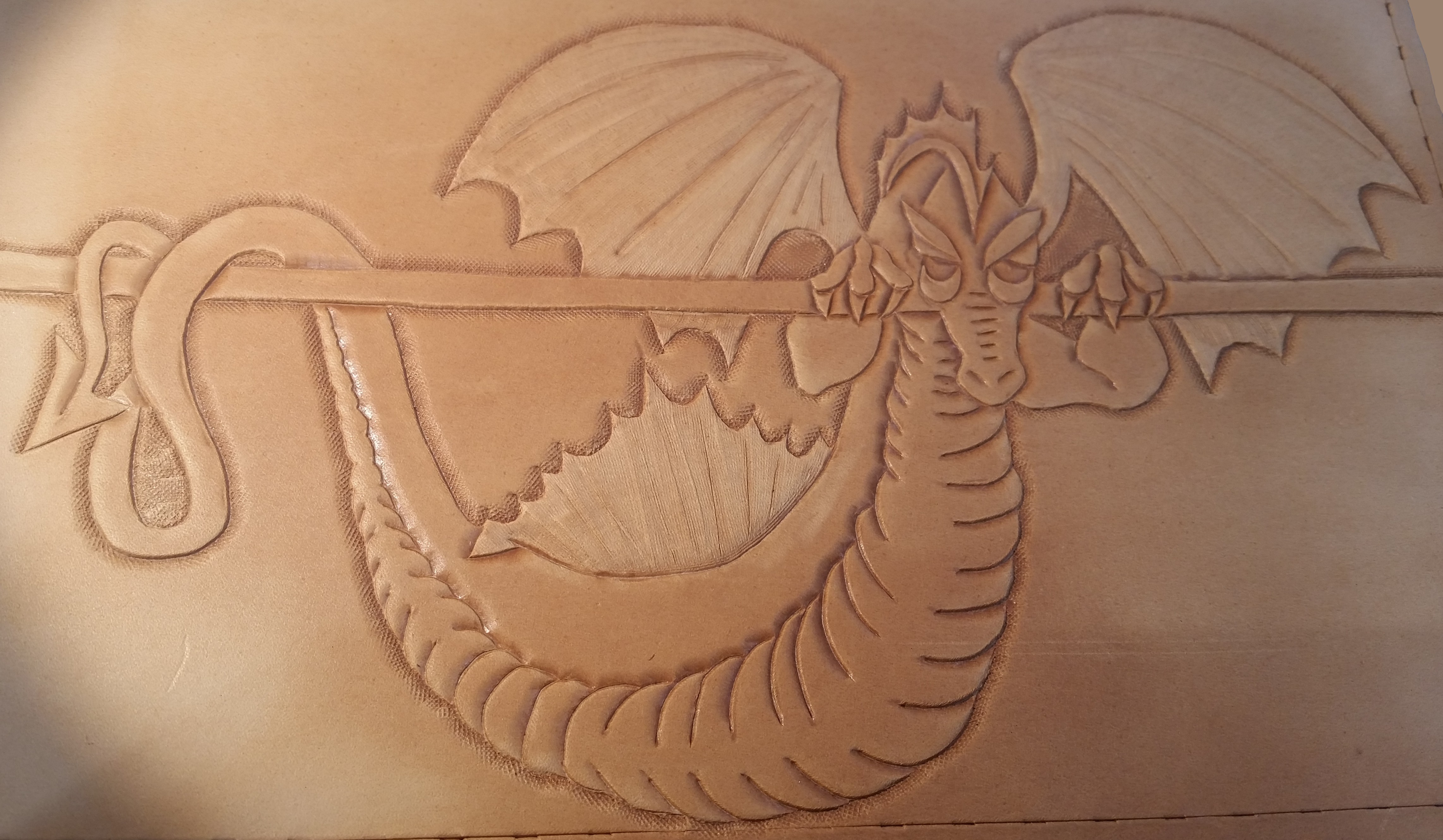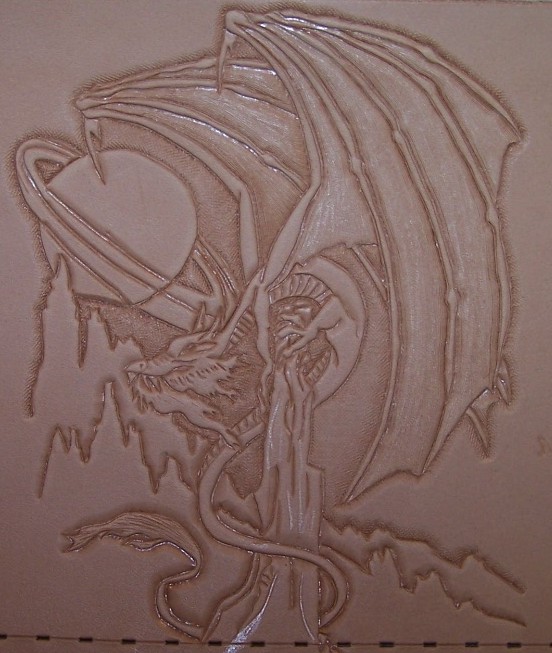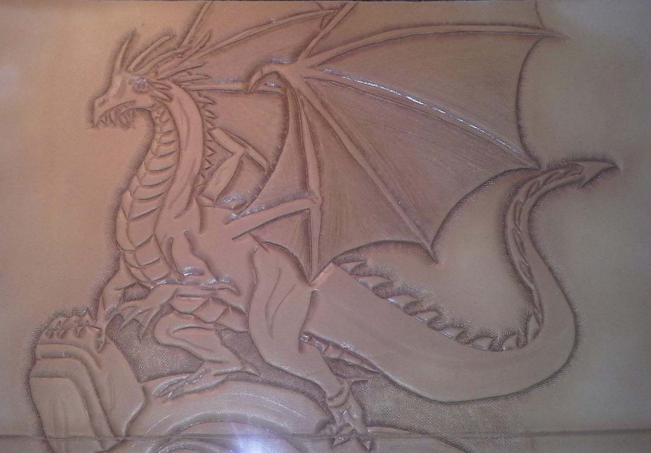 We hand tool all carvings, bring the detail in the pattern, heraldry, or artwork to life in relief. We have some stock patterns that we use. Or we can convert your custom artwork to a suitable carving pattern. Custom carving and special orders are no problem.