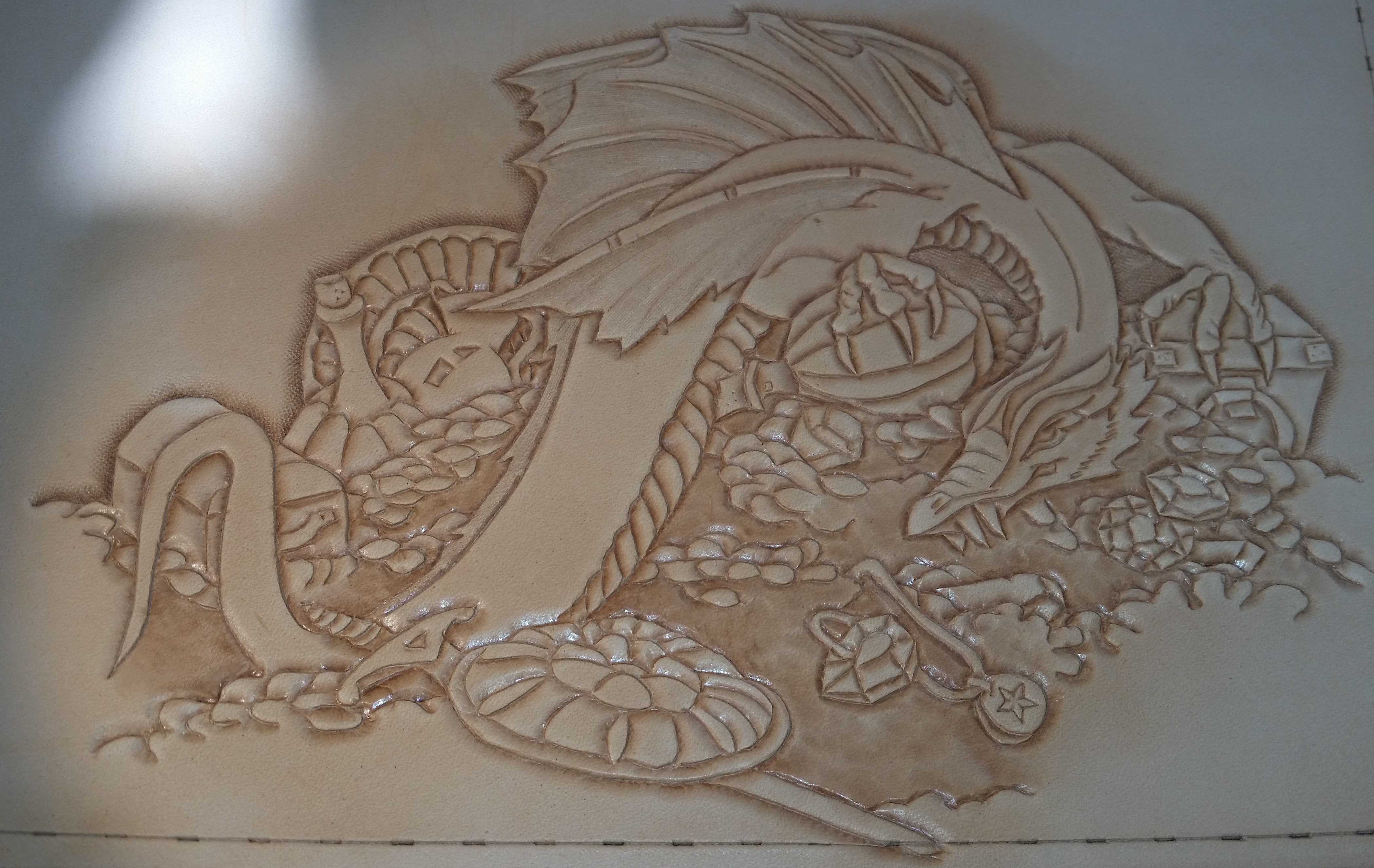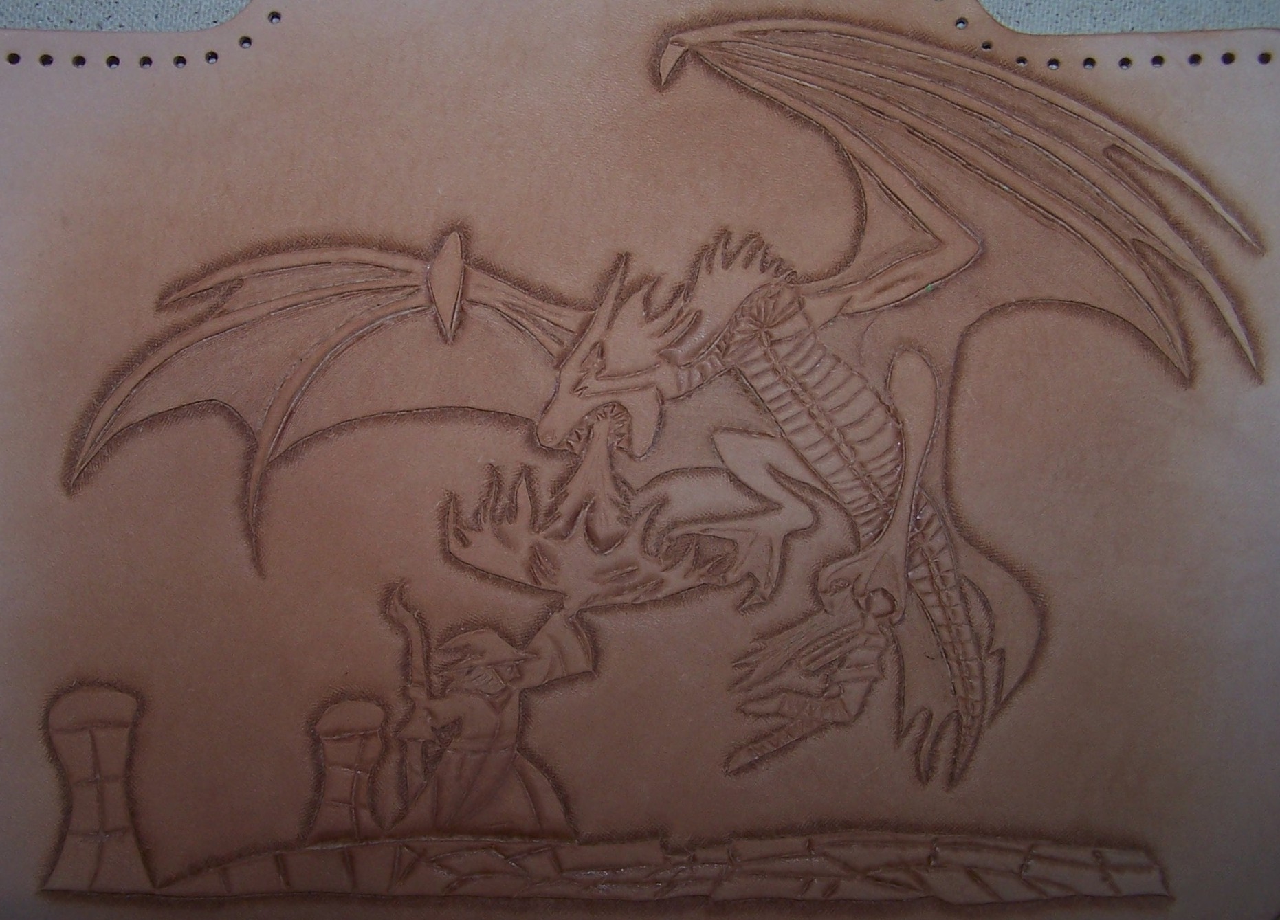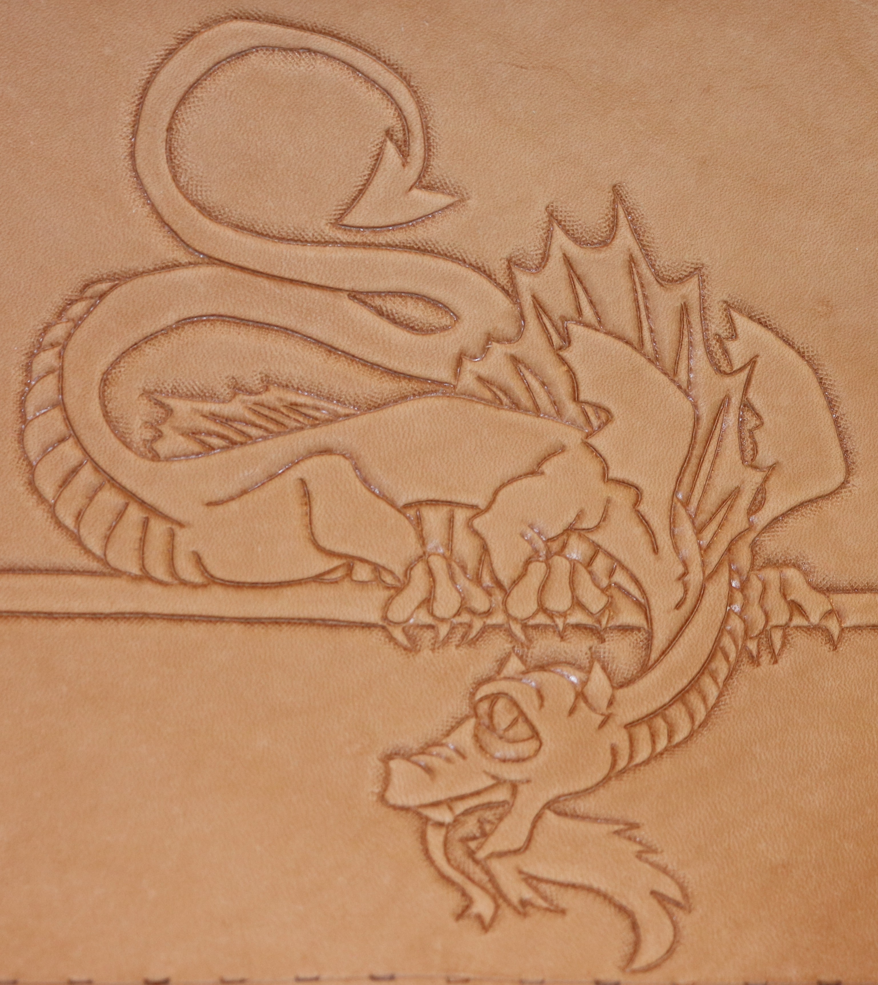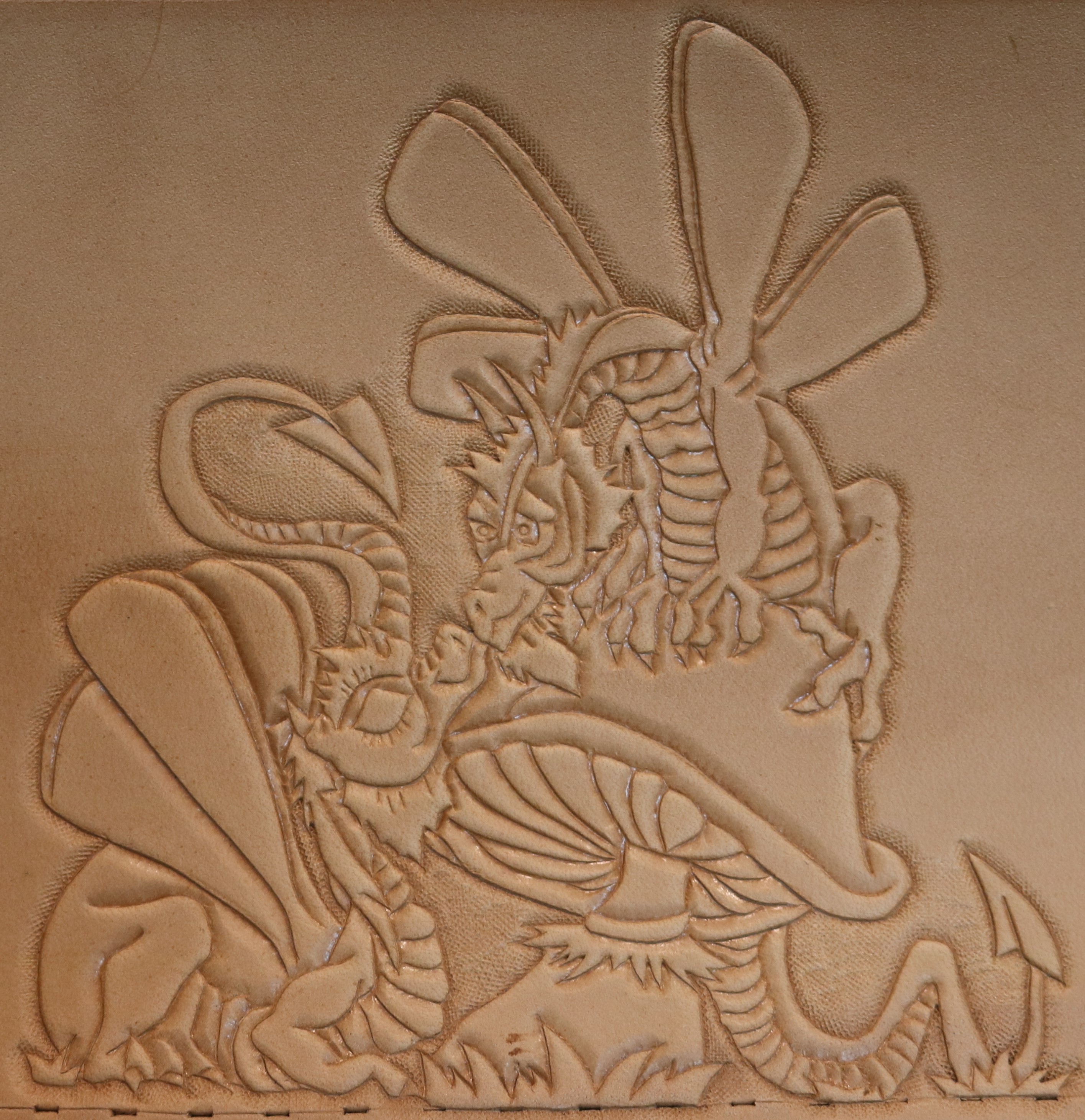 We hand tool all carvings, bring the detail in the pattern, heraldry, or artwork to life in relief. We have some stock patterns that we use. Or we can convert your custom artwork to a suitable carving pattern. Custom carving and special orders are no problem.